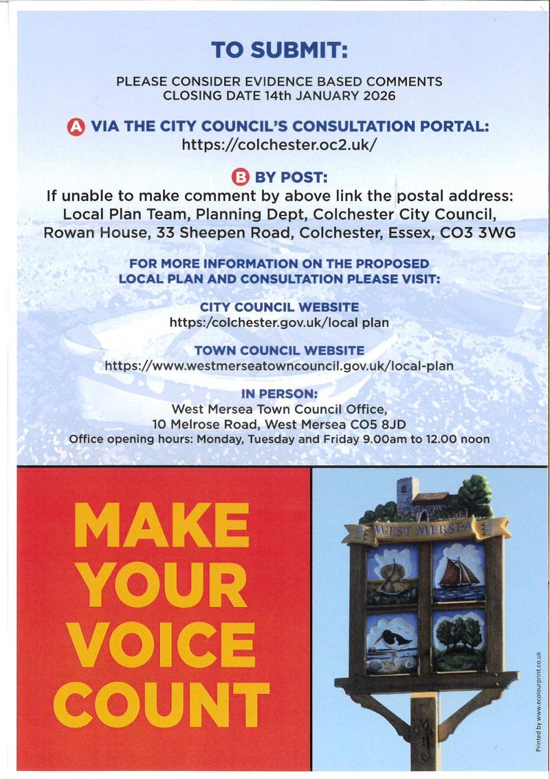1. West Mersea Town Council statement to the Local Plan Committee of 10th November 2025: click here